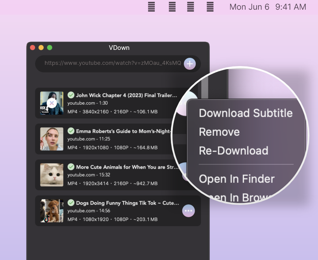 作为Mac上优秀的多线程下载工具,VDown支持1000+网站资源高速下载。视频、图片、音频下载快到极致,可自动检测视频字幕,极致的下载速度与体验,造就新一代Mac下载神器!