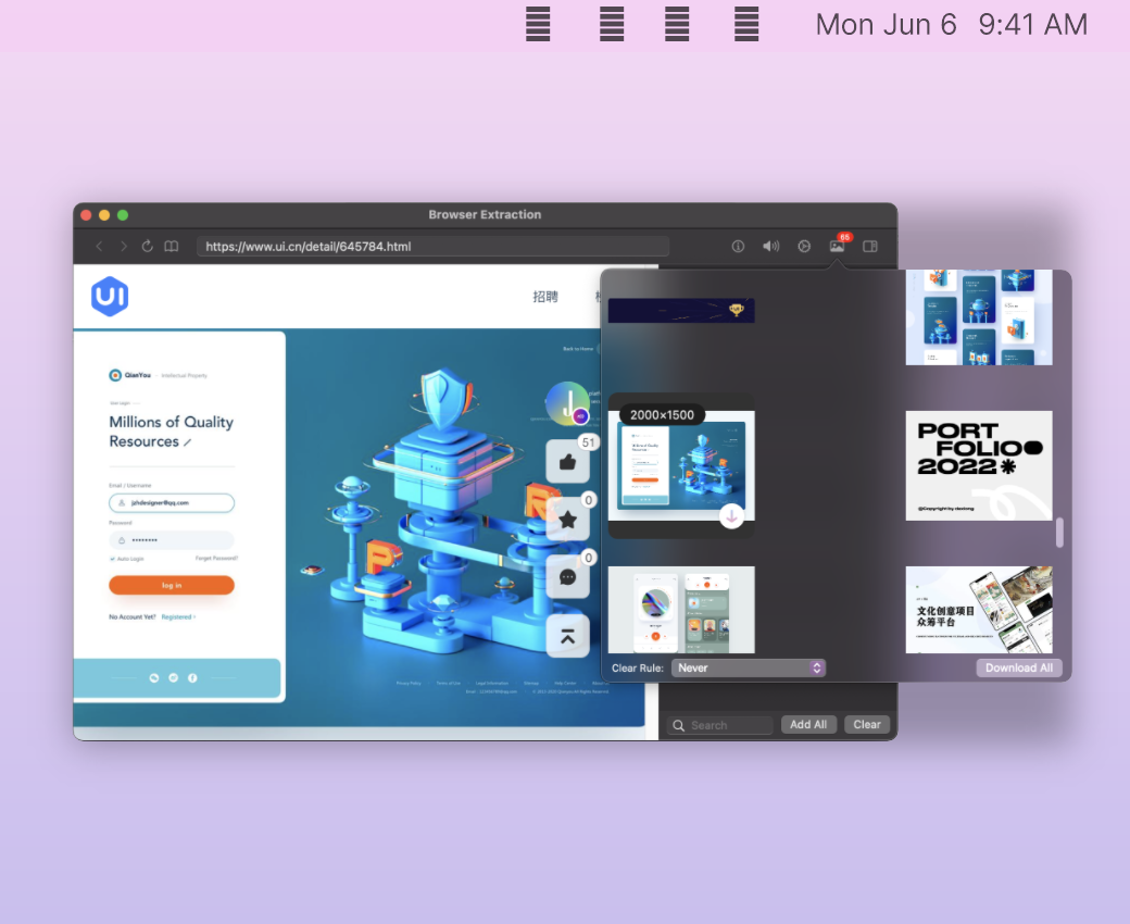 对于特殊的网页资源,支持浏览器提取,手动自定义下载,所见即可下